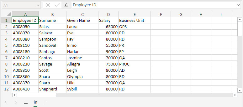 resultColumnCaptions = { "Employee ID", "Surname", "Given Name", "Salary", "Business Unit" },