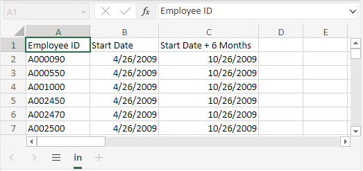 resultColumnCaptions = { "Employee ID", "Start Date", "Start Date + 6 Months" },