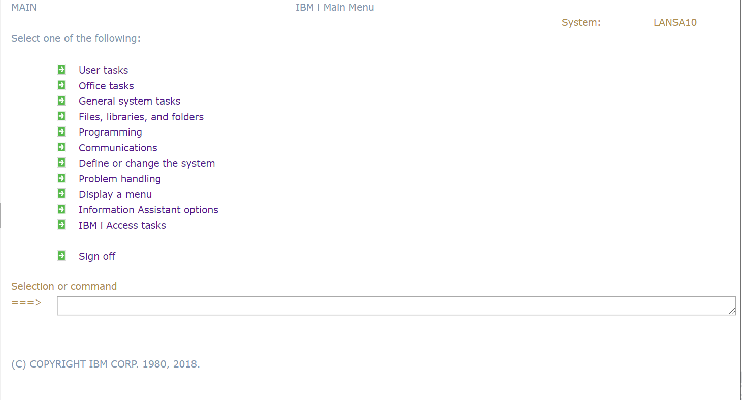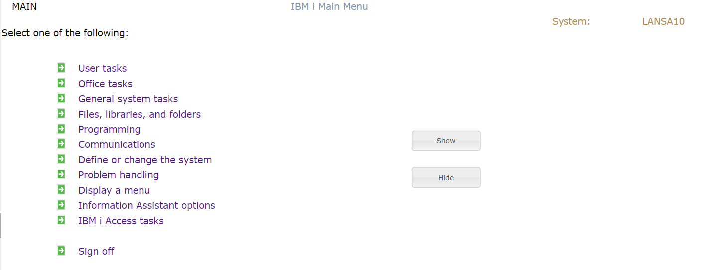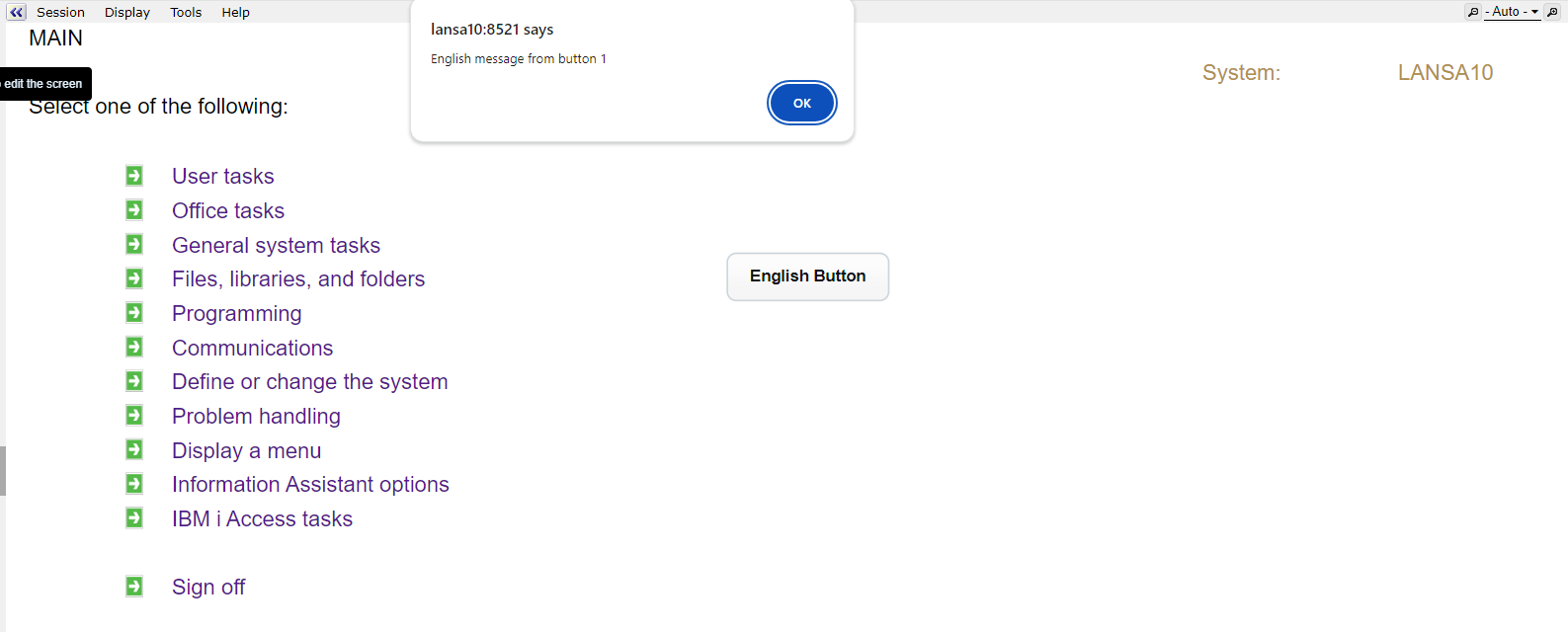v  Click on the "System i Main Menu" element on the screen. (The screen title element)