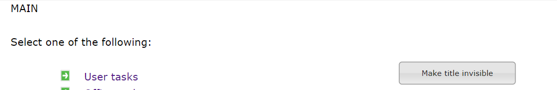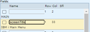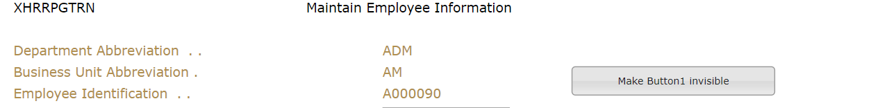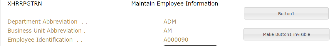 A push button is added to the MAIN screen. When the button is clicked it makes the screen title element ("System i Main Menu") disappear.