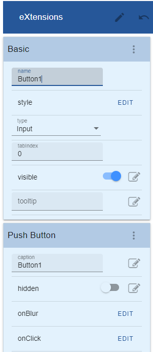 -          The “style” property of various eXtensions (e.g. button eXtensions) is a particularly good example of a property that should be set once only in the template as you would normally want all buttons to have the same style.