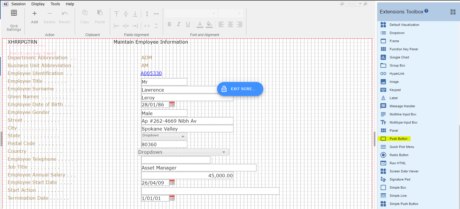 v  Start axes in developer mode go to the Maintain Employee screen, and edit the screen.