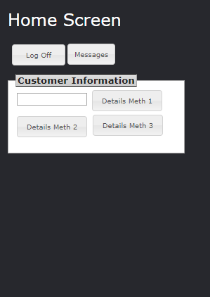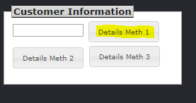 Now on your Customer Details – Meth 1 screen add 4 buttons towards the bottom of the screen like this: