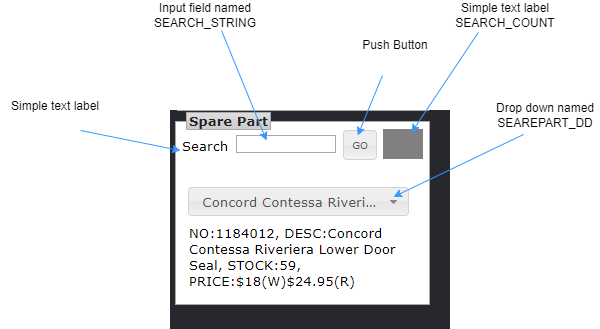 In this simple example you have now managed to produce a generically searchable spare parts stock/cost enquiry – all managed and presented in a very small and dense screen area.