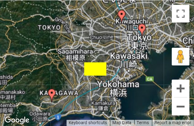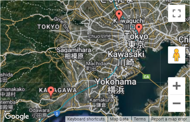 chart shows a map in Japan with red markers to the 3 place names just defined