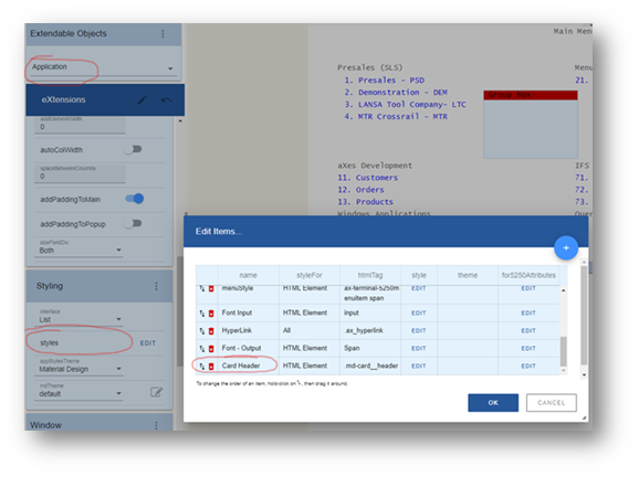 - Edit the Application Styles and set the following attributes: