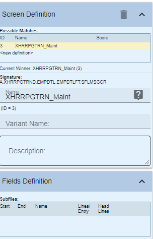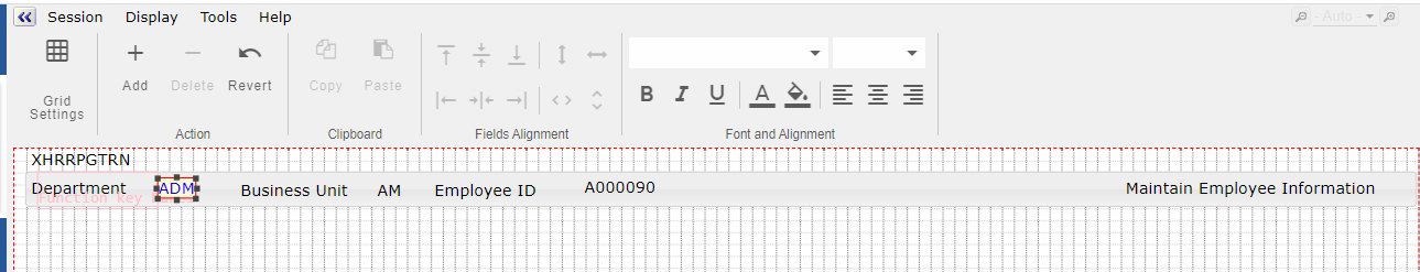 This is the XHRRPGTRN_Maint screen, with its fields named as indicated: