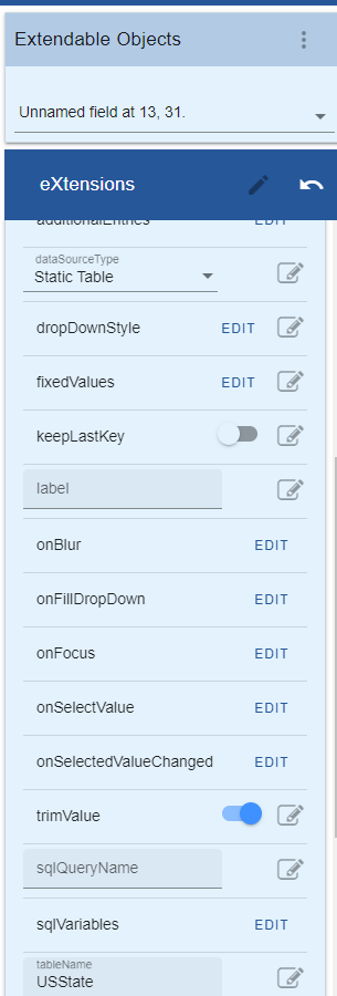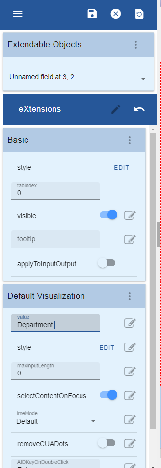 In the aXes Developer window, click Application in the Extendable Objects list to view the application properties. No need to put it in edit mode, it is already editable.