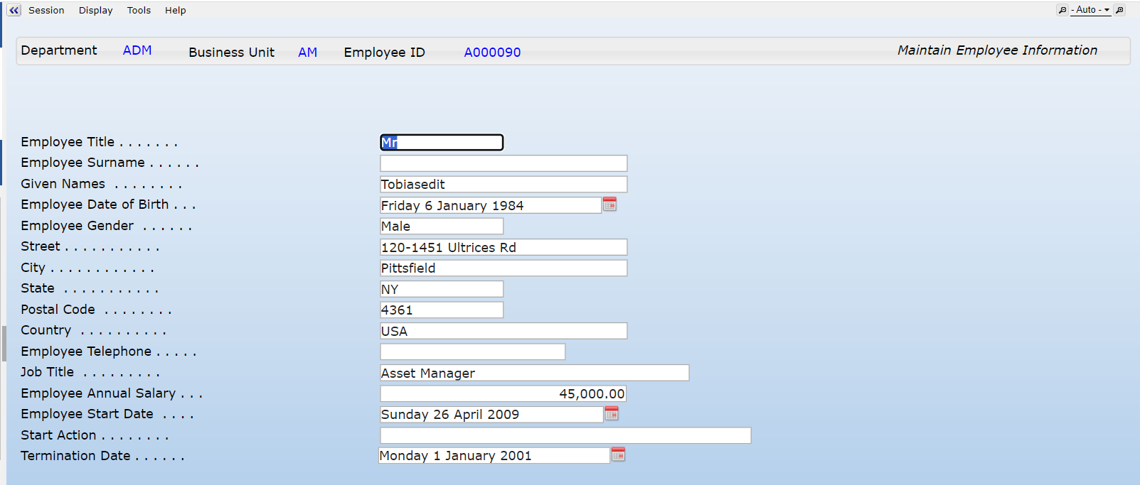 Now, move the employee identification information according to the plan. The employee identification information is title, last name, first name and gender. After you finish your screen should look something like this:
