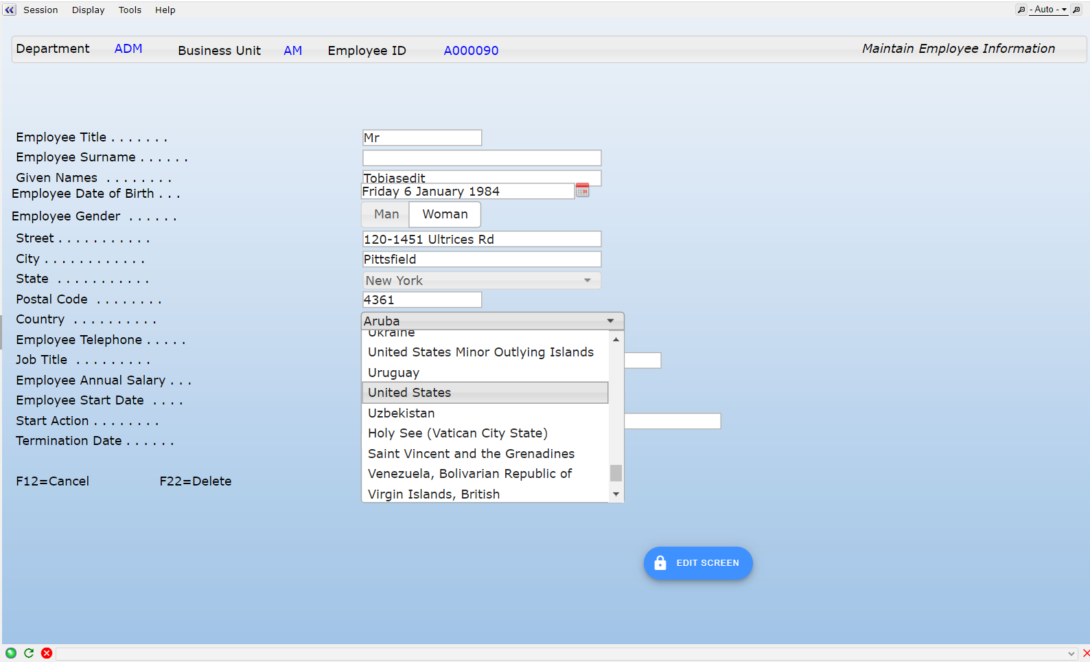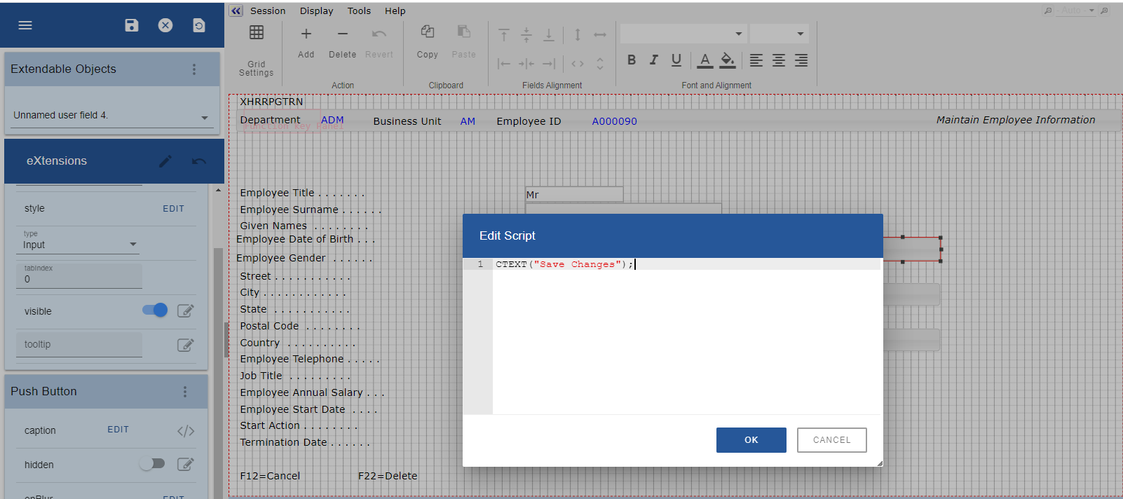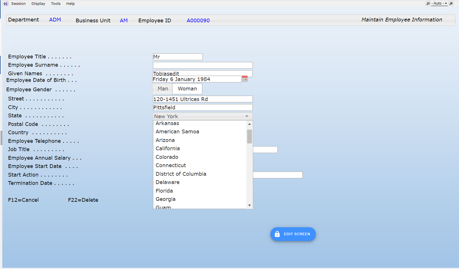 The F12=Cancel and F22=Delete text at the bottom of the 5250 screen is screen text, just like the text "Employee Title". There is nothing special at all about this text. Its presence or absence in no way influences what function keys are actually enabled by the screen.