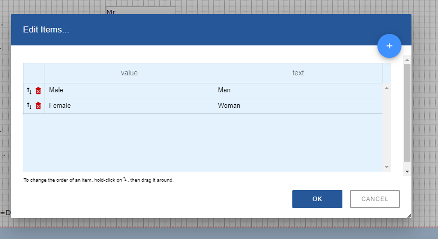 aXes will display the Edit Items window. Click the delete icon in the first column to remove the default styles.