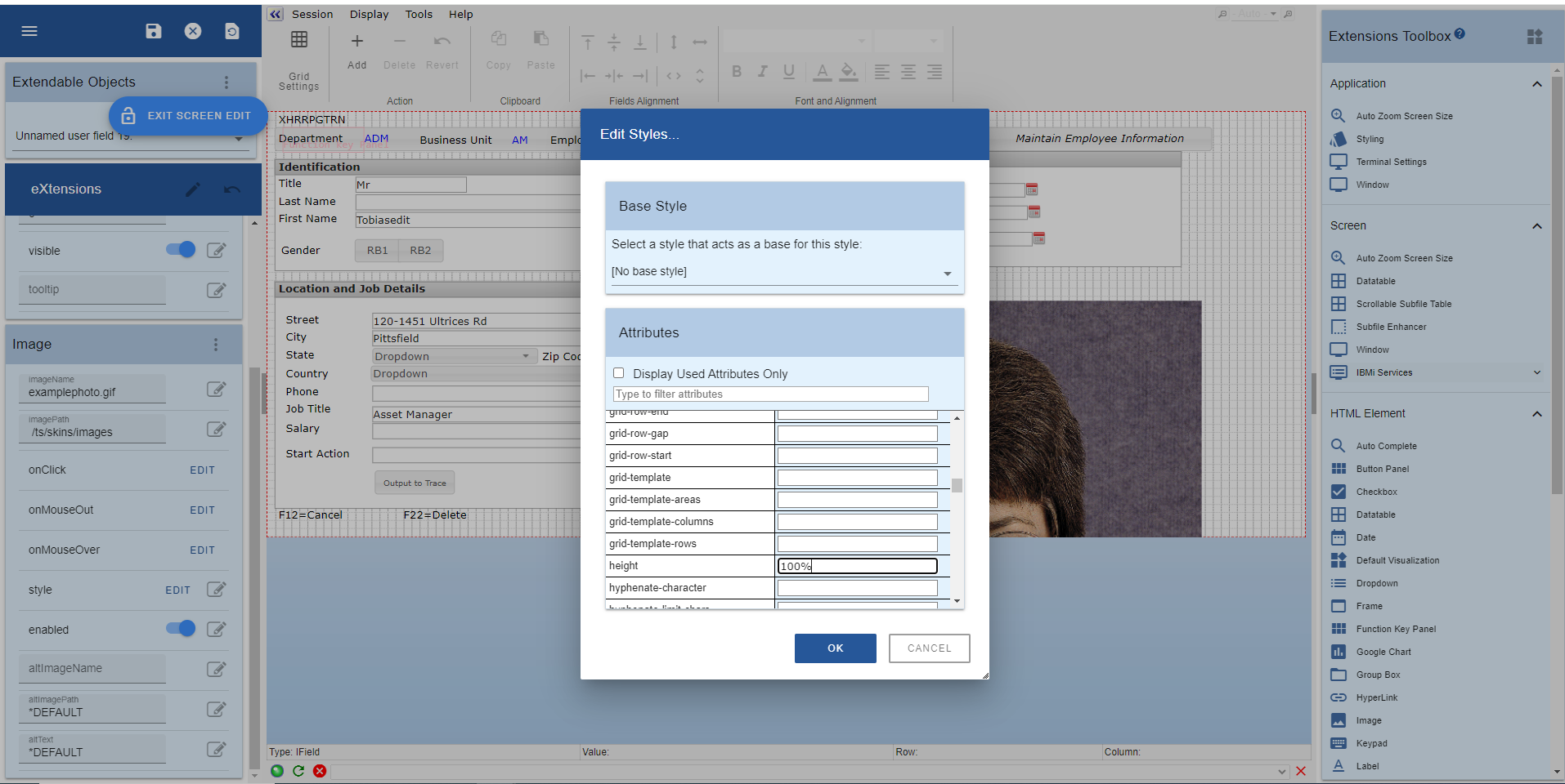 The ability to script the image properties is useful. Often the image name needs to be dynamically determined by using information present on the screen, such as a product number or an employee number. You may even have to execute an SQL request to look up a database table to find the name of the image.