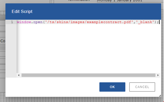 Edit the script for the onClick property of the Employment Contract hyperlink, and copy the this code into the Edit Script window, then click OK.