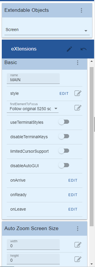 Select the Auto Zoom Screen Size extension from Extension Toolbox then drag and drop it onto the screen panel.