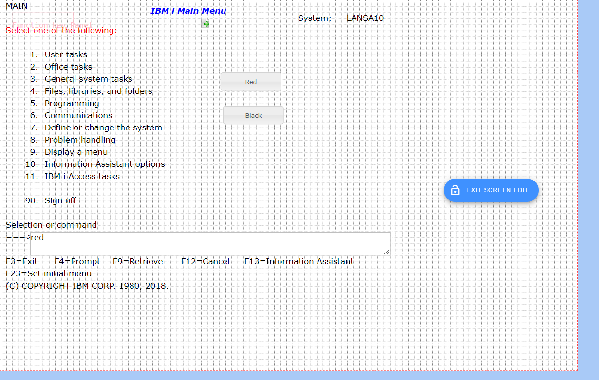 When you display an un-customized screen the 5250 attribute bytes are mapped to web page characteristics by using a cascading style sheet, defined in a CSS document.