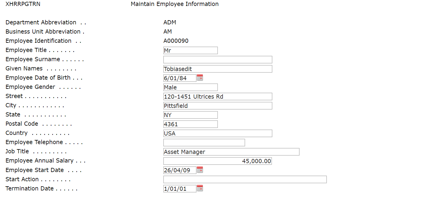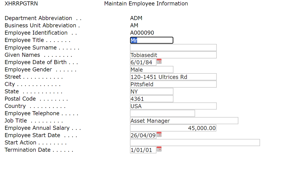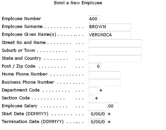 Select Enroll a New Employee option. Blank out details and press enter, you should see the fields in error highlighted in red.